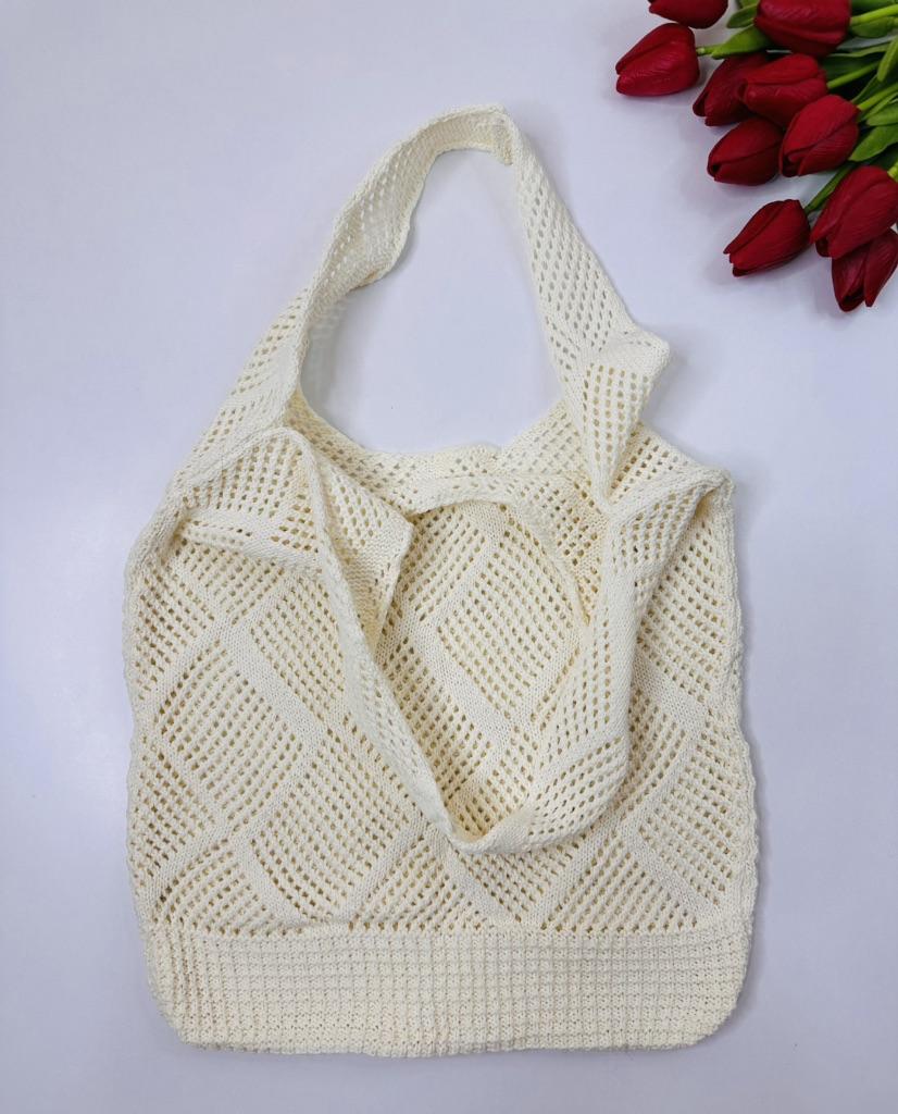 Breathable Knit Tote Bag - Open Knit Summer Shoulder Bag with Spacious Design and Lightweight for Beach, Shopping and Casual Outings, Beach Tote Bag
