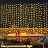 8 Modes LED Solar Courtyard Curtain Lights Outdoor Waterproof Fairy String Lights 100LED 200LED 300LED Garden Window Bedroom Wedding