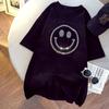 Heavy Industry Smiling Face Iron Diamond Short Sleeve T-shirt for Women Spring and Summer New Loose Pure Cotton Mid-Length Half-Sleeve Top