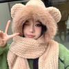 Women's Cute Bear Winter Hat, Scarf, and Gloves Set - Thick, Plus Velvet, Three-Piece Set for Warmth & Protection.