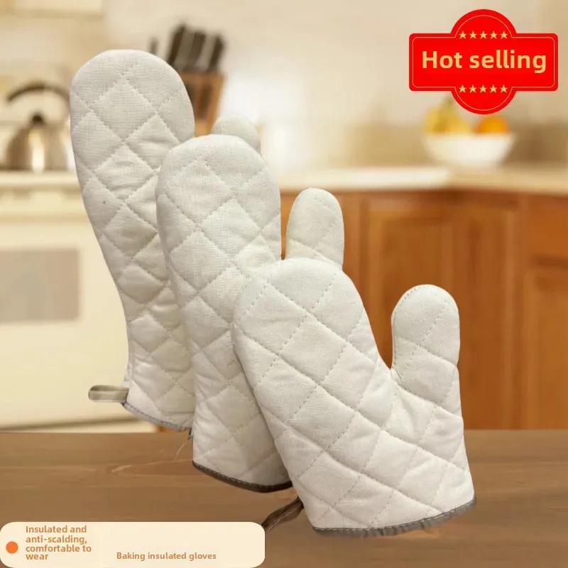 Extended Heat-Resistant Cotton Oven Gloves - Thickened for Kitchen, Microwave, Baking, and Anti-Scalding Protection