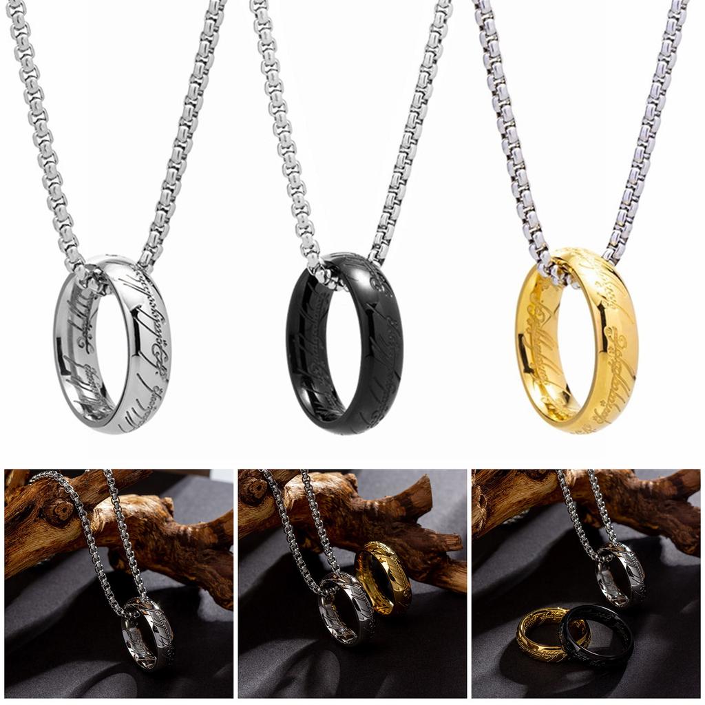 Men's Retro Finger Ring Necklace Titaniums Steel Clavicle Chain Unisex Choker Everyday Wear Neckchain Accessories