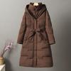 Stay warm and stylish this winter with our Women's Light Luxury Hooded Down Cotton Coat. Designed with a modern Korean flair, this coat features a long and loose fit that offers both comfort and chic appeal. Its insulated down cotton filling ensures maximum warmth, while the polyester fabric and fur lining enhance durability and coziness. The solid pattern and long sleeves make it a versatile choice for various outfits, perfect for the fashion-forward woman seeking both functionality and elegance in her winter wardrobe.