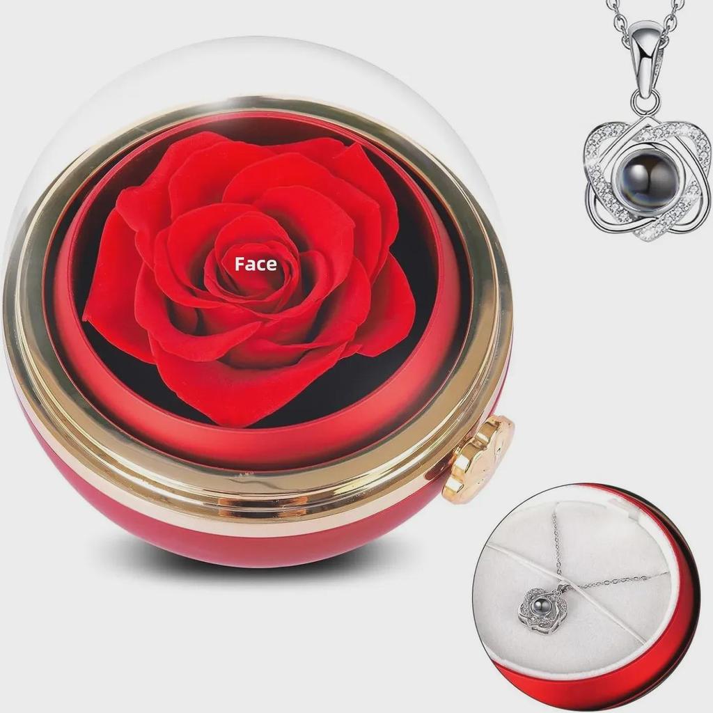 Rotating Rose Gift Box with Necklace and Ring - Valentine's Day Eternal Flower Jewelry Box