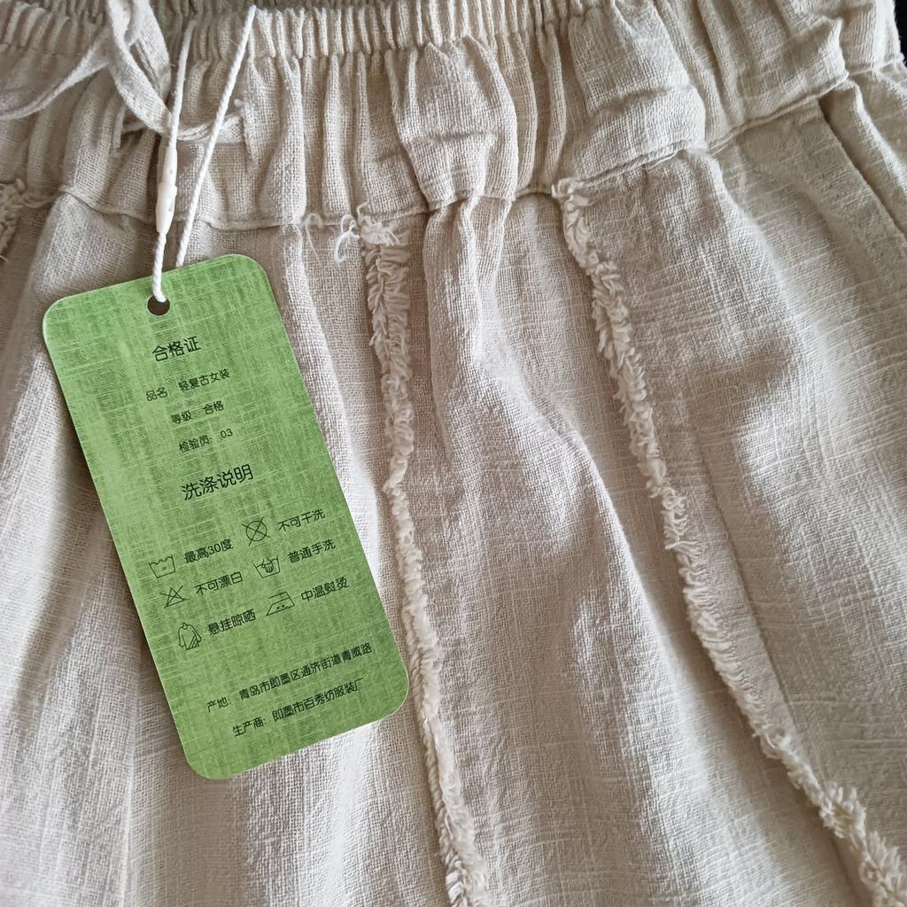 Women's Spring & Summer Ramie Flannel Pants - National Style, Improved Chinese Straight Cut with Drawstring.