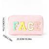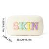 Embroidered Corduroy Letter Toiletry Bag - Large Capacity, Portable Cosmetic Storage