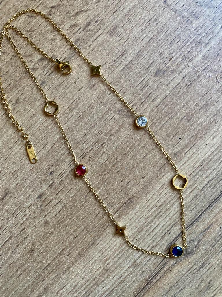 Non-Fading Light Luxury Four-Leaf Clover Coloured Zirconia Necklace Women's New High-Class Sense Of The Collarbone Chain