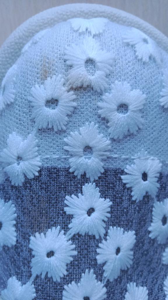 Normal slippers with a plastic mesh top. For size 36.5, I took 38, just right.