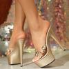 Liyke Summer Fashion Diamond Rivet Women Platform High Heels Modern Slippers Transparent Sandal Sexy Open Toe Party Prom Shoes