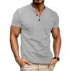 Summer Men's Short-sleeved V-neck Waffle Polo Shirt with Solid Fabric Buttons