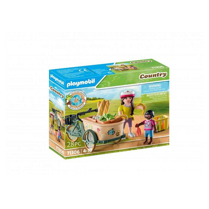 Country - cycliste avec vélo et remorque avant