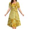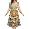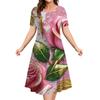 Women Summer Round Neck Short Sleeved Dress 3d Floral Pattern Casual Fashion Clothing Woman Party Elegant Long Skirt Pullover