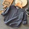 Boy Button Cotton Long-sleeve T-shirts Solid Color Spring Autumn Letters Pocket Children's Bottoming Shirts 2-12 Year Boys Tops