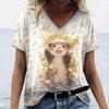Cute Animals Printed V-Neck Woman Clothing Harajuku Women's T-Shirts Casual Oversize Short Sleeve Tshirt Loose Pullover Kawaii