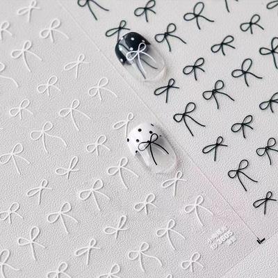 1Pcs 3D Japanese Mini Bow Nail Art Stickers Fashion Cartoon Sale Black White Ribbon Nail Decoration Decals Diy Nail Accessories