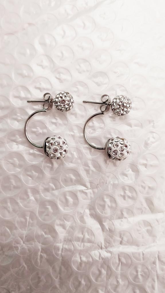 Women's Unique White Rhinestone Round Ball Pendant Party Drop Dangle Earrings