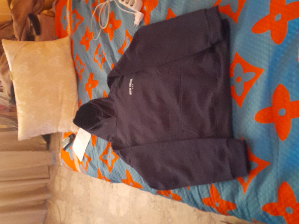 Hoodie with a significant defect. The insert with pockets is sewn off-center. As a result, the pockets shift to one side. On one side of the hoodie, the distance to the pocket is 18 cm. On the other side of the hoodie, the distance to the pocket is 14 cm. The pants' waistband is only 40 cm, very small. I demand to send the item back and get a refund.