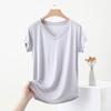 Ladies' Loose Fit Modal T-Shirt Summer V Neck Short Sleeve Solid Color Tee Top for Womens