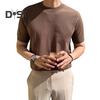 Summer Men T-Shirt Crew Neck Solid Color Short Sleeves Knitted Shirt Breathable Slim Fit Lightweight Basic Tee Casual Business Top