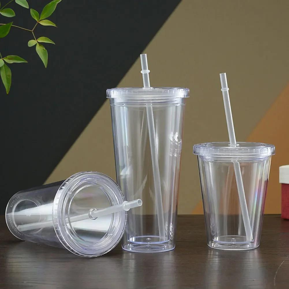 Clear Tumbler with Straw Reusable Transparent Double-layer Water Bottle for Coffee Milk DIY Smoothie Cup Drinkware
