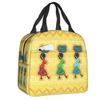 African Elements Pattern Insulated Lunch Tote Bag for Women Africa Ethnic Culture Cooler Thermal Bento Box Work School Travel