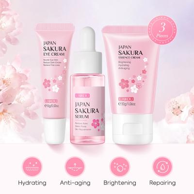 Sakura Skin Care 3pcs/Set Brightening Facial Serum Lighten Blemishes Cream Moisturizer