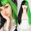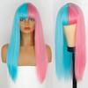Similler Women Synthetic Hair Long Straight Heat Resistant Wig Pink and Black Red White Split Dye Wigs with Bangs