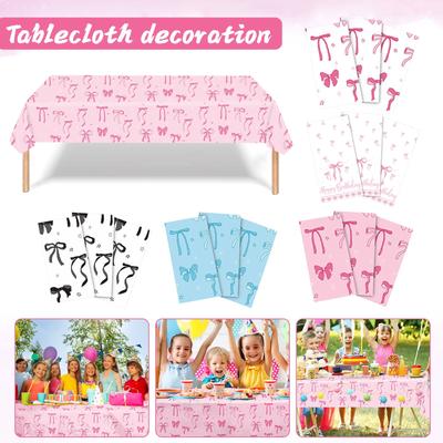 Bow Table Cloth Rectangle Table Party Supplies Bow Theme Disposable Plastic Table Covers Bow Birthday Decorations For Women Girls Bridal Baby Shower