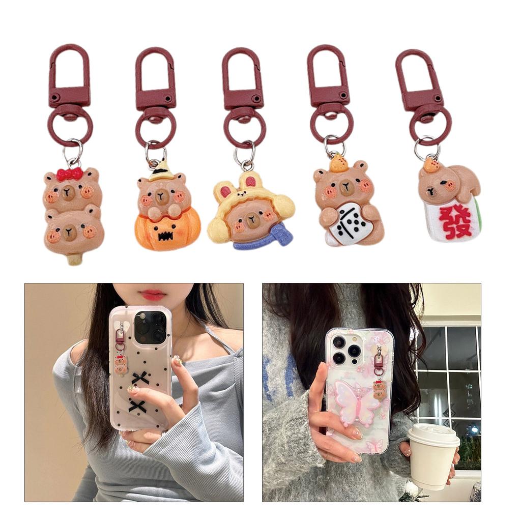 Set of 5/6 Stylish Capybara Keychain Animal Keyring Ornament Lovely Resin Bag Pendant Accessories for Animal Lovers