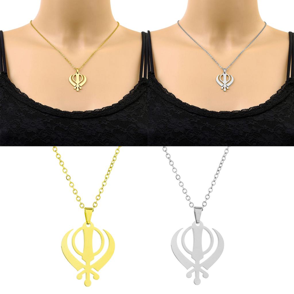 India Sikhism Necklace Religious Symbol Clavicle Chain Cultural Symbol Pendant Neckchain Unisex Religious Metal Jewelry