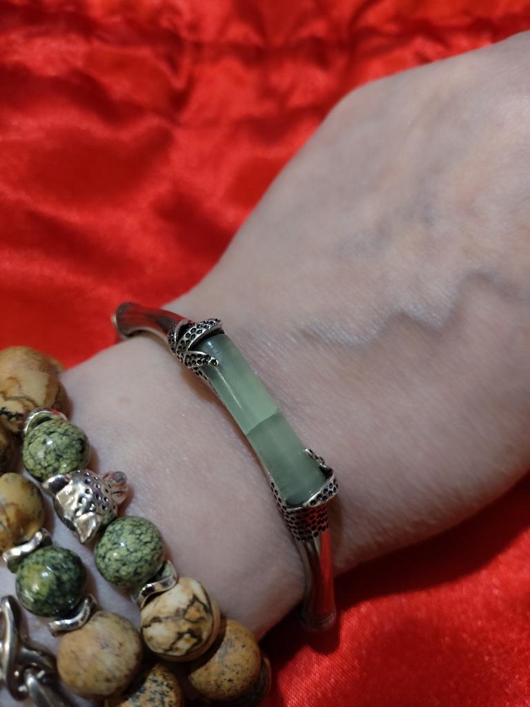 I doubt the bracelet is made of silver. Dull color, attachment around the circumference of the item, which is not visible in the photo, weak clasp. Do not recommend.