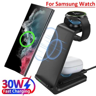 30W 3 In 1 Travel Wireless Charger For Samsung Galaxy S23 S22 Watch 6 Pro/5/4/3 Active 1 2 Buds 2 Pro Plus Fast Charging Station