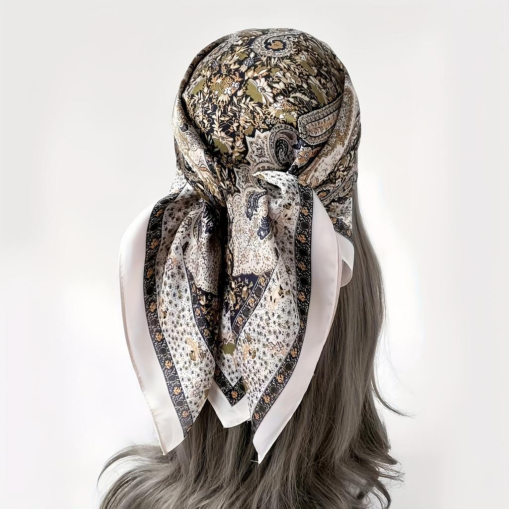 Elegant Women's Satin Square Scarf Vintage Paisley Floral Pattern Soft Silky Neck Scarf Headband Shawl Ladies Hairbands