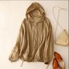 Summer Sun Protection Shirt Cotton and Linen Hoodie Women's Casual Beach Vacation Sunscreen Shirt