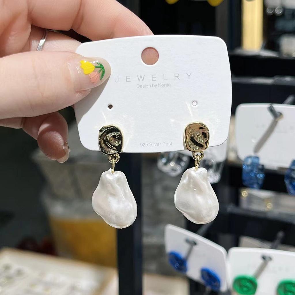New French Retro Baroque Pearl Pendant Earrings for Women Ms Fashion Elegant Metal Jewelry Party Accessories