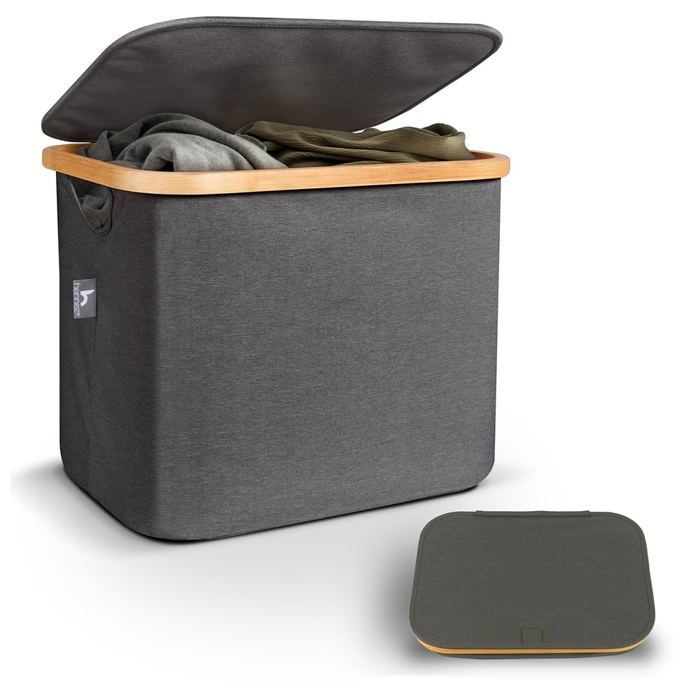 Corbeille à linge - paniers kallax - 40l - tissu - bambou - gris