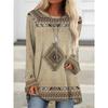 Plus Size Women's Vintage Ethnic Style Printed T-shirt Loose Long Sleeves Blouse Casual Crew Neck Tops Sweatshirt Pullover