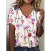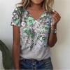 Flower Floral 3D Print T-Shirts Women Streetwear Summer Harajuku T Shirt Y2k Tops V-Neck Tees Woman Female Oversized Clothing