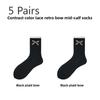 5 Pairs of Cute Spring and Autumn Women's Bow Tied White Lace Mid Calf Socks