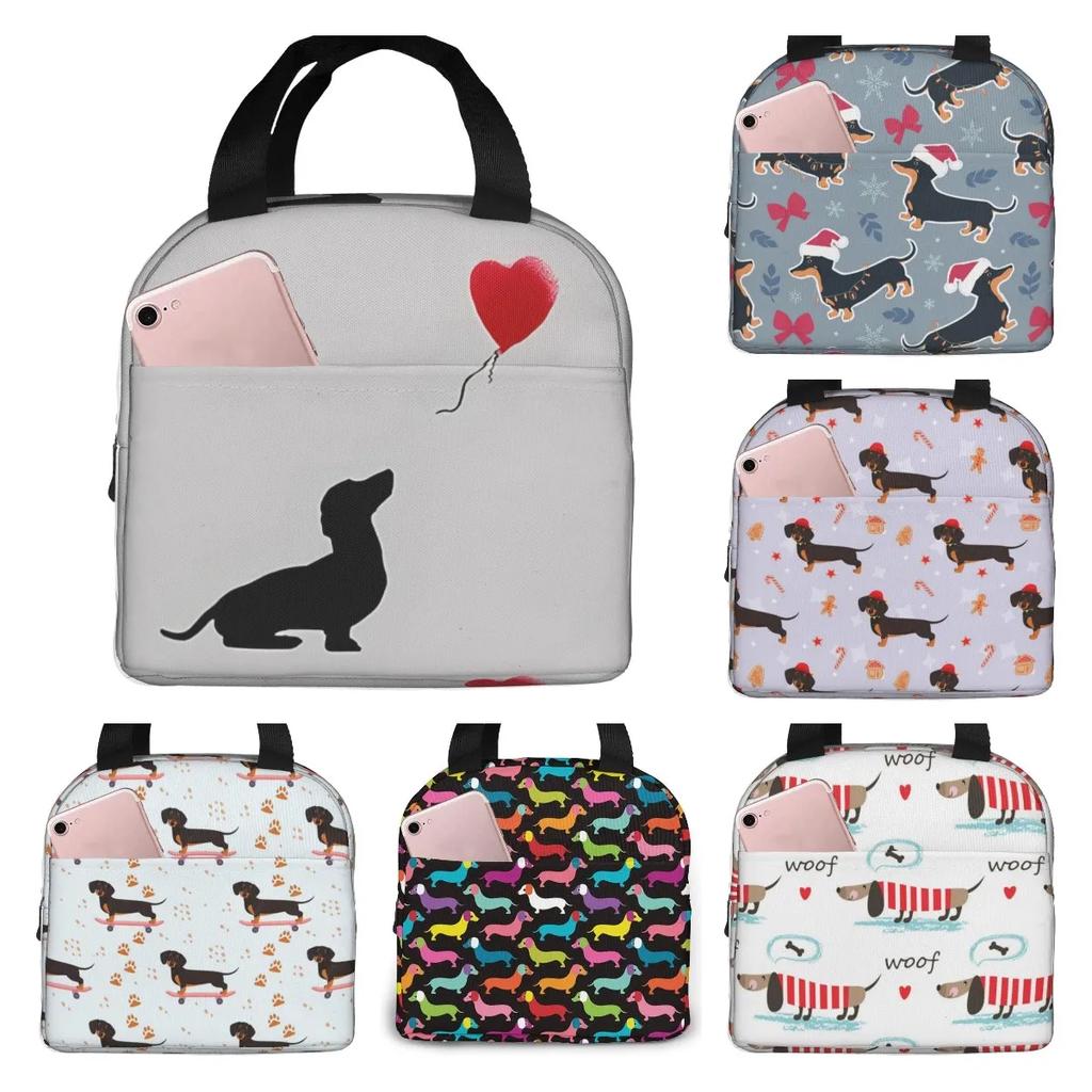 Xmas Cute Dachshund Dog Lover Animal Lunch Bag Small for Men Women Kids Outdoor Picnic Work School Lunch Box Bag Insulated Gift