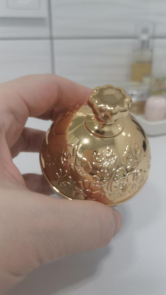 Bought it as a gift, a very stylish jar, packed in a box, sealed in cellophane on top. The scent is delicate. Thank you!