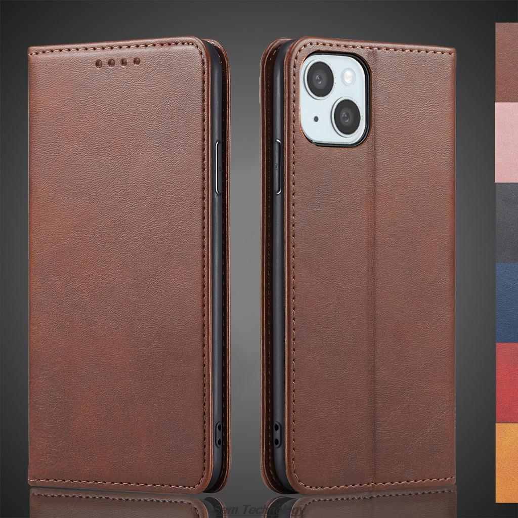 Magnetic Attraction Leather Case for Apple iPhone 15 Plus 6.7" Holster Flip Cover Case Wallet Phone Bags Fundas Coque