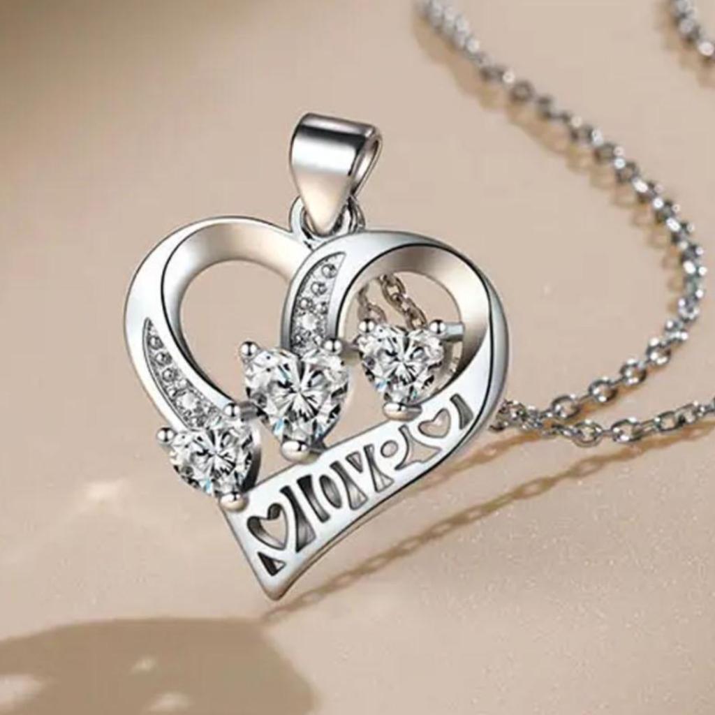 Pendant Plus Necklace Combination Heart-shaped Three-diamond Necklace Women's Japan and Korea Diamond Collarbone Chain Fashion