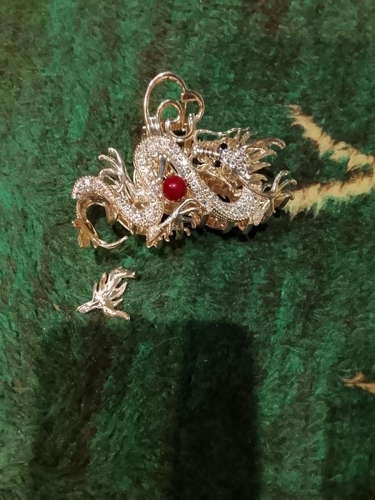 Missing one eye. A pity. I will look for rhinestones to try to restore it Jum returned the money. Overall, the hairpin is very cool