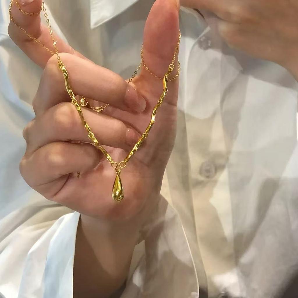Irregular Ripple Water Drop Necklace Women's Light Luxury Niche Design High-end Fashion Exquisite Pendant Necklace