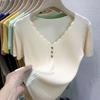 Ice Silk Short Sleeve T-shirt Women's 2025 New Summer Style Slim Short White V-neck Sweater Short-sleeved Top