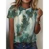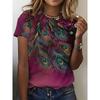 Summer Fashion Women's T Shirt Ombre Graphic Feather Trendy Classic Short Sleeve Crew Neck Tees Round Neck Regular Tops