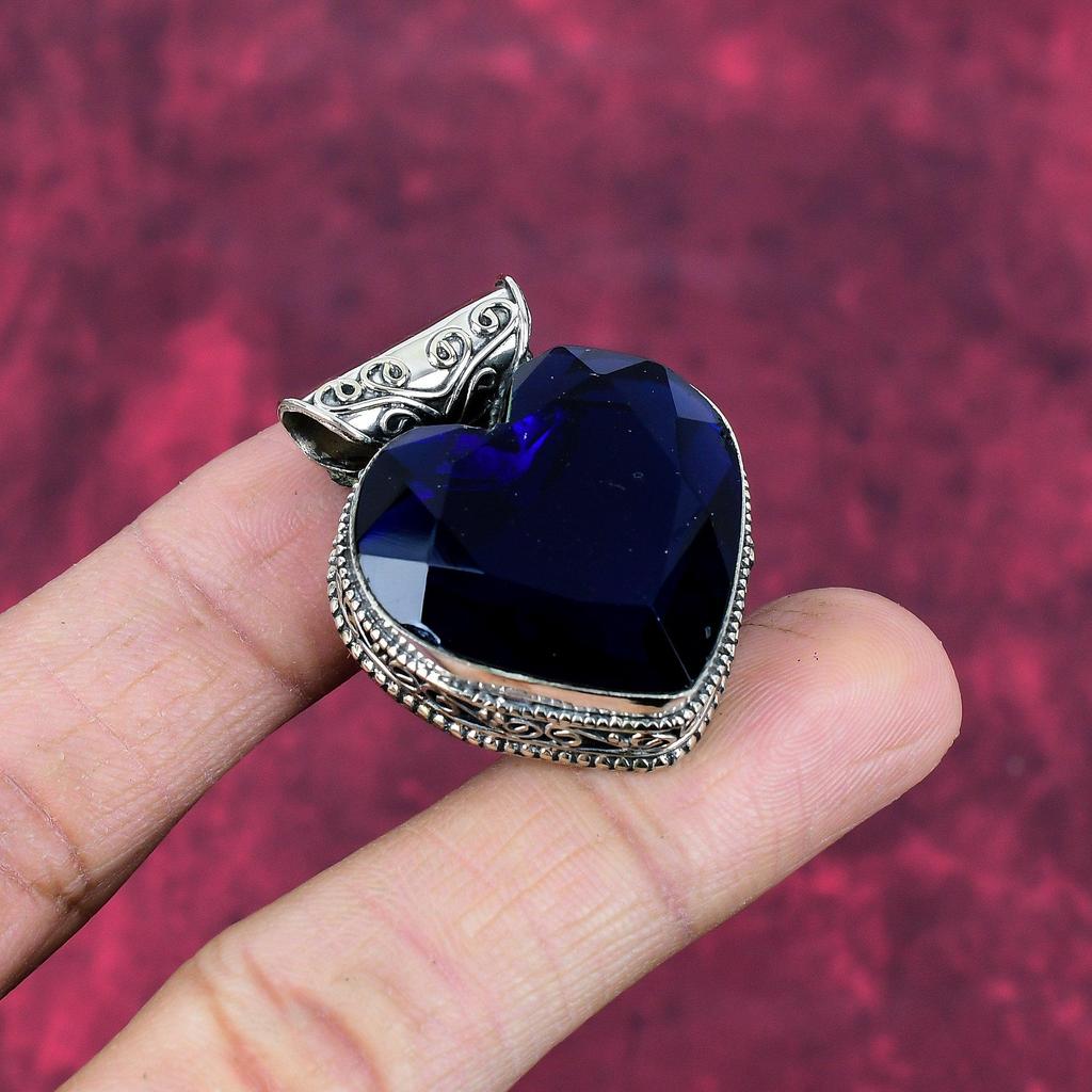 Blue Sapphire Pendant, Handmade Gemstone Pendant, 925 Solid Sterling Silver Pendant Antique Jewelry, For Engagement Gift