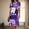 Women's Fashion Graceful Kitten Print Summer Spring Short Sleeve O-Neck Casual Dresses