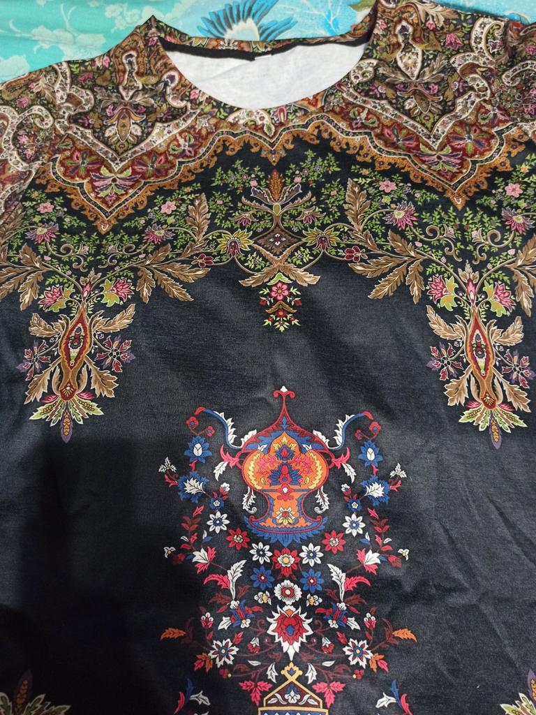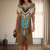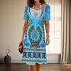 Women's Fashion Graceful Retro Pattern Print Summer Spring Short Sleeve O-Neck Casual Dresses
